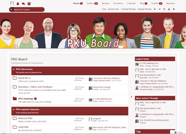 Il forum è frequentato soprattutto da soggetti PKU di varie nazionalità e ora gli amministratori sono in cerca di utenti di lingua italiana per dar vita ad una specifica sezione ed eventualmente qualcuno che voglia fare da moderatore appunto della sezione italiana.